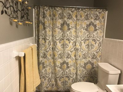 Combine casual style with classic elegance with the Marble Hill Rayna Shower Curtain. This updated traditional shower curtain features pineapple and arabesque motifs growing from a distressed damask. A golden yellow and grey color palette adds the perfect amount of style and sophistication. Curtain measures 72x72. 12 button holes allow for easy hanging with shower hooks or rings. Pair this 100% cotton curtain with a plastic shower liner to get the most protection and performance. Liner and hooks/rings not included. Machine washable. Coordinate to Marble Hill Rayna reversible bedding and other accessories, all sold separately.