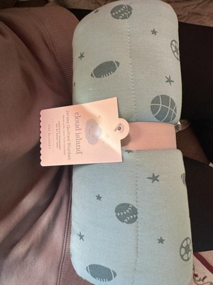 Wrap up your bundle of joy in this Rayon from Bamboo Jersey Quilted Blanket from Cloud Island™. The rayon from bamboo fabric with added spandex is soft to the touch and sure to help your baby stay cool and comfortable whether you lay them down for tummy time or a ride in the stroller. Adorned with an allover sports print on a quilted backdrop, it makes a cute addition to your baby's nursery decor.