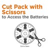 I understand this is to protect young kids from eating batteries, I'm all for protecting kids, but this design makes no sense. There has to be a better design. The instruction video of how to open is helpful, but wow, you have to squeeze hard to cut thru the plastic. However, I keep my battery package in my pocket in case the ones in my hearing aid die while I'm out and about. I don't always carry scissors in my pocket either. Not to mention the sharp edges and corners on the cutouts that scrape your skin until it bleeds. Not exactly child friendly there, plus the dead battery being thrown away. How does cutting up the case for new batteries protect kids from the dead batteries? I used to put the old batteries back in the case so they don't end up on the floor by accident, even after throwing them away? Sure, save them in a cup or jar for recycling-- kids get into that too. Nothing is perfect, and the battery case is no exception. The batteries themselves tho... they work well. But not worth buying again if I need a powersaw to get then out.