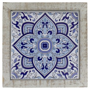 Raz Imports 9.75" Blue and White Floral Tile Wall Decor