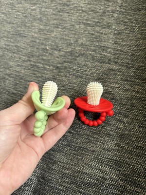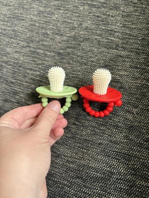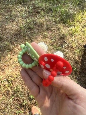 These teethers are awesome. I have hard time finding something that a baby can properly hold and chew on. These pacifier mushrooms are awesome for teething. They are small enough to be held by tiny hands yet perfect texture for itchy gums.