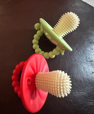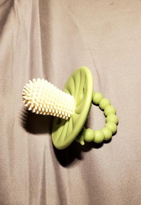 - "•Soothing Teething Relief With Massaging Bristles: Made from 100% soft silicone, the Chompy teething pacifier features patented bristles that gently massage sore, swollen gums for ultimate relief. Perfect for chewing, it can also be frozen for extra cooling comfort.