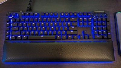 [This review was collected as part of a promotion.] - Impressively high build quality - Razer Green Switches are responsive, fast, and "clicky" - Very low actuation point and required actuation force further making typing a breeze - Slight curve and ergonomics make it very comfortable, padding adds to this - Has endless additional keys and customizability options, perfect for gaming - Slightly rough texture to each key, did notice it helps with grip, but could be uncomfortable for some The Blackwidow v4 Pro is one of the best keyboards I have used in recent memory. Right out of the box, the build quality was impressively high. The cool metal and slightly grippy textures of the keys all felt premium and sturdy, which should be expected given the price. This is without a doubt a keyboard that will continue to perform after a lifetime of usage. The signature Razer Green switches are a perfect fit for the keyboard with their low latency and responsiveness. As a fast typer, I could really shine without being held back by keyboard constraints, and everything about the keyboard from key spacing to the slightly textured finish minimized typing mistakes. Coupled with an incredibly low actuation force and distance, typing on this keyboard is a breeze. The slight ergonomic curve and optional padding are also greatly appreciated, significantly increasing comfort for longer keyboard usage. When it comes to gaming, it has every bell and whistle a keyboard could need, from programmable custom keys and sliders to customizable and beautiful RGB backlighting for every key. While it is an expensive keyboard, the premium nature shines through every aspect of the product.