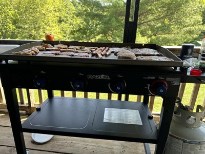 [This review was collected as part of a promotion.] We’ve wanted a gas griddle for our backyard parties and BBQs for quite a while. The Razor 37-Inch, 4-Burner Gas Griddle is the perfect addition to our patio! It is very easy to set up, well built, and sturdy. The bifold cover converts to spacious and strong side shelves, and can be shut and locked to protect the griddle. I did end up buying a cover from Razor for extra protection. I’m actually interested in more of their accessories. The cooking space is huge, and cooks evenly. The grease trap is large and easy to access. Our first griddle meal was a huge batch of chicken and steak fajitas with homemade tortillas. They turned out great, and all our friends raved about the dinner!