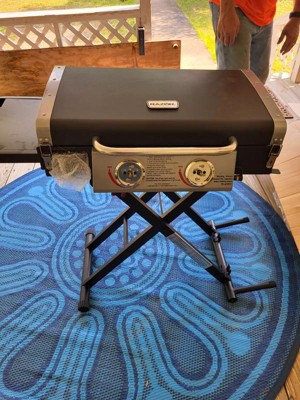 [This review was collected as part of a promotion.] As the title says, this little griddle is great for taking camping! It was easy to set up and the instructions were very clear. I love that you have the option of using a large tank or a small one, which makes its portability much more versatile.