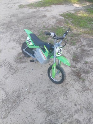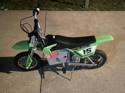 [This review was collected as part of a promotion.] My son loves the Razor MX400 dirt rocket 24V dirt bike. It was easy to add the handle bars and fenders. It goes about 14 mph and rides nice
