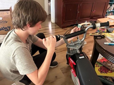 [This review was collected as part of a promotion.] This toy motorcycle is such a great addition to our home. The bike itself was easy to assemble and charging is simple while not taking too long. My oldest is 14 and thinks the bike is a lot of fun. I'm a big fan of it being electric and not gas, and not being heavy or difficult to control when riding it. To me it's the perfect introduction to dirt bikes and motorcycles that also gets my son off the electronics and outside exploring.