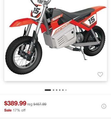 [This review was collected as part of a promotion.] We absolutely a love the razor mx409 dirt bike I wanted to try this for my 12 year old who wants a real one I want him to try it before we get a real one this is perfect it is a little short but he still fits fine and it’s the perfect speed for him to get use to it we definitely recommend!!