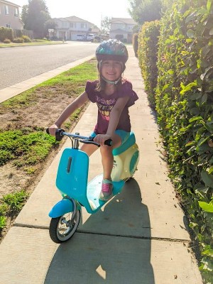 [This review was collected as part of a promotion.] My oldest just learned how to ride her bike without training wheels a couple months ago. Prior to that I would have never considered buying one of these for my kids since my 5 and 3 year olds are still trying to learn how to balance with their training wheels. My 7 year old got her helmet on, and was on her way! She is loving the wind flying through her hair as she zips along. She was taking the corners a little fast, until I taught her how "letting off the gas" works. She was also braking with a screech before learning to let off the power first. But she's loving it! I wish they came in my size!