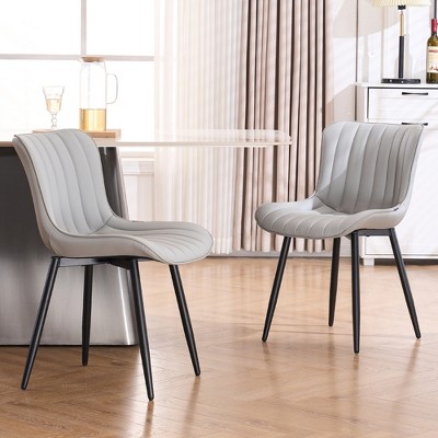 Rbied Dining Chairs, Modern Kitchen & Dining Room Chairs, Upholstered Faux Leather Cushion Seat and Sturdy Metal Legs, Camel 4PCS