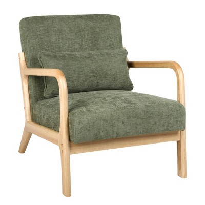 Rbied Velvet Accent Chair Armchair Single Sofa, Modern Tufted Upholstered Reading Chairs with Arm and Gold Metal Leg for Living Room Bedroom, Green