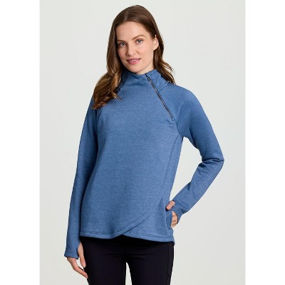 Product Name: RBX Active Women's Ultra Lightweight Soft Cotton Blend French Terry Crewneck Sweatshirt with Crochet Trim - Blue Flint,M