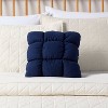 Anchor your living space in eye-catching style with this RE Decorative Square Throw Pillow from Room Essentials™. This decorative throw pillow features a tufted pattern in navy blue for a stylish look that coordinates with any decor style or color palette. The soft recycled polyester microfiber exterior with polyester fill offers a comfy surface to lean against, while the sewn-seam closure give it a sleek finish.