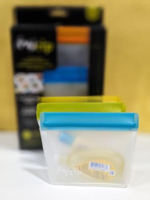 We made this (re)zip size with a mission to replace as many single-serving snack packs as possible. Now, you can snack freely without all of that waste. Small yet mighty, with a wide base and a tidy profile, the Standup 1-cup holds the ideal number of bites: whether it’s crudites for one, cheerios to go, a snack portion of chips, or post-workout egg bites. Like all genuine (re)zips, they are 100% food-safe PEVA, so they’re sturdy, airtight, and leakproof, keeping contents and your tote bag safe and dry. A 5-pack helps organize pre-packed snacks by color: one per weekday, family member, or special diet. P.S. Your dog asked us to mention they are good for dog treats. This is a reusable product.