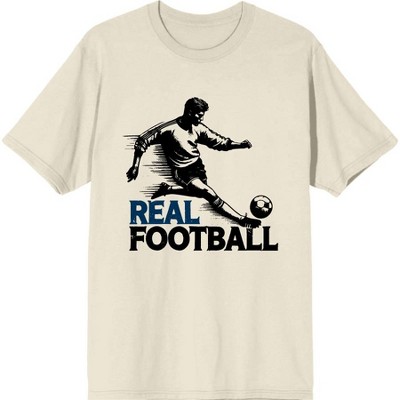 "Real Football" Sports Back to School Adult Natural Crew Neck Short Sleeve Tee-Large