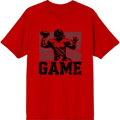 "Real Football" Sports Back to School Adult Red Crew Neck Short Sleeve Tee-Large