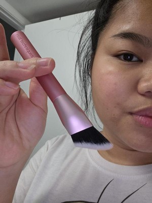 [This review was collected as part of a promotion.] i was very excited to try this product, as i am usually a big fan of real techniques products. they’re usually pretty affordable and work well for the price. unfortunately, this brush is not the same case. it is probably one of the worst makeup tools i have ever used. the bristles are barely held into the base and every time i use it with any liquid products, the hairs constantly fall out. additionally, they are so weak, it just bends and flops all over the place when applying! since it has no rigidity to it, its extremely difficult to control. i really wanted to like this one though!!