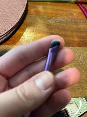 [This review was collected as part of a promotion.] This brush is good for smudging eyeshadow along the lashline. I do wish one end was “sharper” to apply shadow as if it was eyeliner? The fluffier end is great for applying darker shades in the outer corners. The purple color is super cute too!