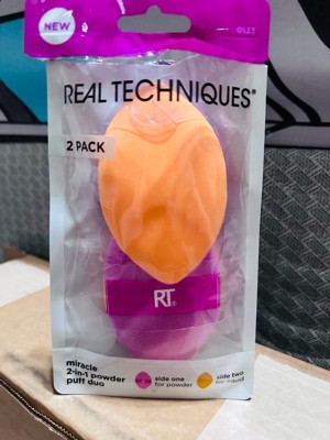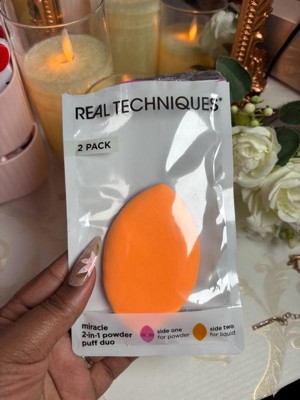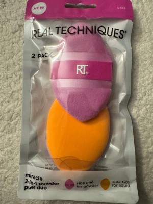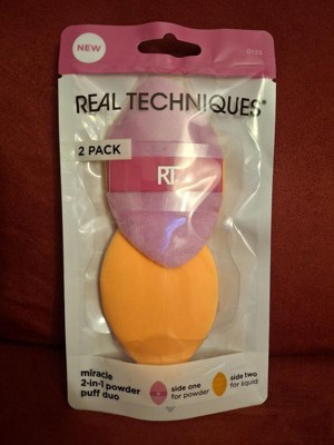 [This review was collected as part of a promotion.] Real Techniques Miracle 2-in-1 Powder Puff Duo This is a fantastic makeup tool, especially for setting powder and liquid foundation. The dual-sided design is convenient—the orange side works well for powder, while the purple side blends liquids seamlessly. It feels soft on the skin and helps create a smooth, flawless finish. Nicely packaged. Great valued product Definitely a must-have for makeup lovers!