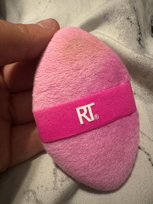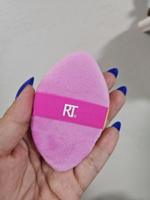 - RT's powder puff is dual-textured and has a reversible elastic band for expert blending with any makeup formulas