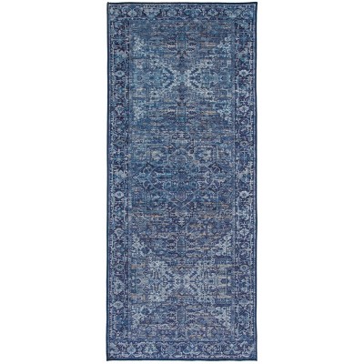 ReaLife Rugs 3'x5' Machine Washable Padded Boho Traditional Lyle Runner Rug Blue