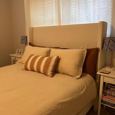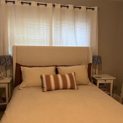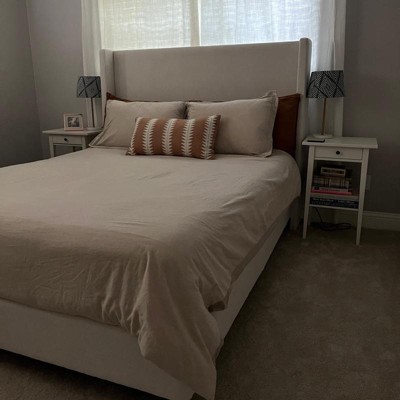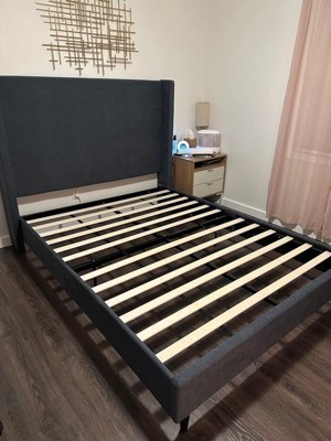 [This review was collected as part of a promotion.] The design is sleek and sophisticated. The wingback design, combined with textured gray canvas upholstery, adds a touch of elegance. It was perfect for my queen size mattress. It has a sturdy construction which guarantees long-lasting durability. The clear instructions made assembling easy. It gave a chic point in my bedroom, offering the perfect blend of aesthetics and relaxation.
