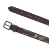 This woodsy belt features scent control fabric perfect for the hunter in your life. Behind the shotshell keeper contains a hidden performance stretch that gives up to 1 inch of extra space for comfort. The ribbon inlay is the perfect contrast to the brown stitched leather. This belt is durable and built to last. Made of Leather