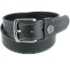 This heavy-duty leather belt has a sleek, solid finish with double stitch edges. The antique brass buckle gives it a pop of color and the extra prong holes provide extra space for a better fit. For the best fit, please order a size up from your waist size (if you wear a 38 pant, buy a 40 belt). Made of Leather