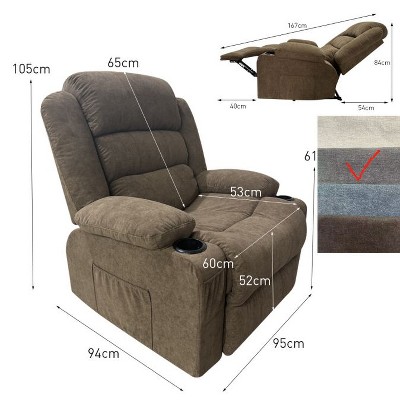 Recliner Chair, Oversized Manual Reclining Rocking Chair, 360 Swivel with Cup Holder, Massage and Heat Recliner, Single Sofa Chairs, PU, Grey