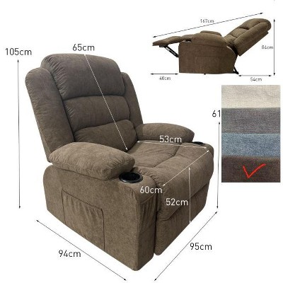 - The recliner chair overall dimension is 40.55"(L) x 39.76"(W) x 41.34"(H),seat size is 22.8"(L) x 21.65"(W). Particularly suitable for use in rented houses or living rooms. Kindly please confirm the size before buying.