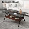 Elevate your living space with this modern rectangle coffee table featuring a tempered glass top and a sturdy black MDF lower shelf supported by durable metal legs. Its sleek design and practical construction offer both style and functionality, providing ample space for books, electronics, and decorative items while enhancing contemporary interiors.