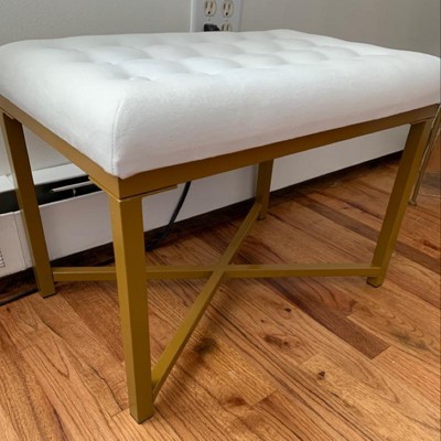 Rectangle Ottoman Velvet Tufted Cushion and Gold Metal X Base - HomePop
