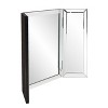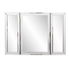 Tripoli is a lovely hinged vanity mirror. There is a central rectangular mirror with 2 door mirrors. Each section is trimmed with a mirrored border. Each mirrored section of the border has a small bevel adding to its style and beauty. This piece is a table top mirror and cannot be hung. Perfect to be used on a vanity or desk.