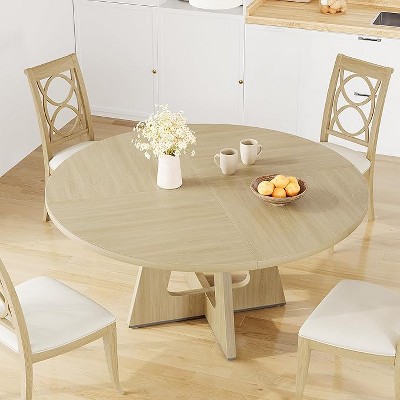 - The Takywep dining table is designed with 10 roomy open shelves integrated into both sides of the double pedestal base. This thoughtfully storage system offers a convenient way to organize and display your tableware, cutlery, napkins, serving platters