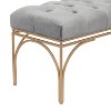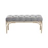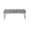 - •This endearing gray velvet bench features a rectangular body structure with a button cushioned velvet seat and 4 sturdy metal legs with a stunning arched bar design