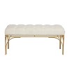 - •This long cushioned bench features a supple white velvet seat and a polished metallic gold bench