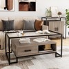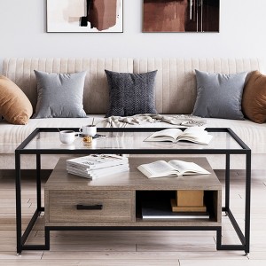 Rectangular Glass Coffee Table with 2 Drawers & Storage Shelf – Vintage Center Table for Living Room