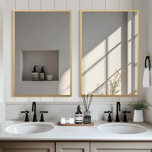 Rectangular Gold Aluminum Alloy Frame Hanging Mirror with Thin Edge and Double-Sided Mounting Feature