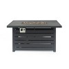 Enhance your backyard or patio with this rectangular iron propane fire pit, delivering 30,000 BTU of warmth. Designed with a built-in tank compartment and durable construction, it provides cozy outdoor ambiance for gatherings and leisurely evenings.