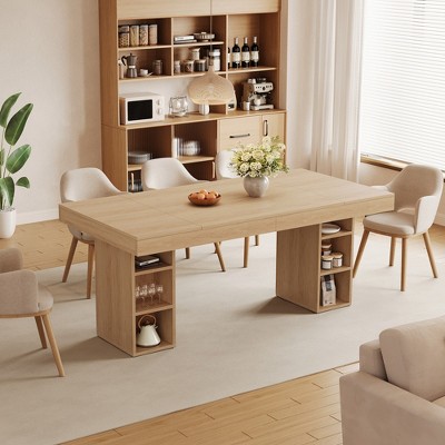 Add a touch of contemporary style and everyday convenience to your home or professional space with the 63-Inch Rectangular Dining Table. This piece is expertly sized 。 Benefit from ten open compartments — three on one side and two on the other — to organize tableware, books, office tools, or decorative accents. These easy-access shelves make this table a practical addition for families, offices, and social spaces.