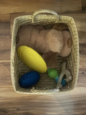 The Small Rectangular Woven Storage Basket from Hearth & Hand is a perfect mix of style and functionality. We use it to store our dog’s toys, and it’s just the right size to keep everything organized without taking up too much space. The woven design feels sturdy and well-made, and the neutral color fits seamlessly with our home decor. I love that it has handles on the sides, which makes it easy to move around when needed. Even when it’s stuffed with toys, it holds its shape really well. It’s a simple storage solution that looks nice sitting out in the living room and keeps the chaos of dog toys under control.