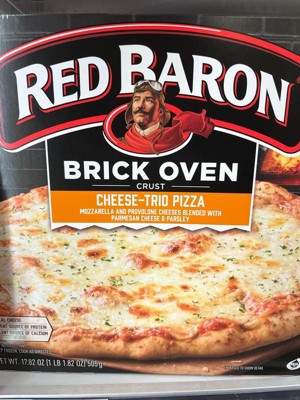- RED BARON Brick Oven Cheese Trio Pizza is made with zesty tomato mozzarella, provolone, and parmesan cheese