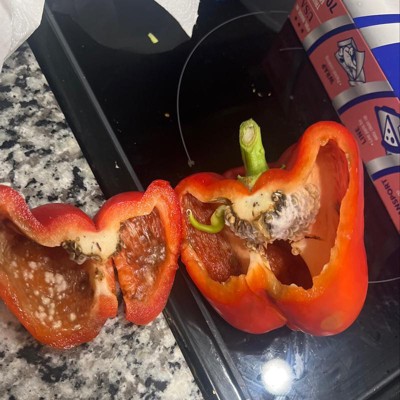 Both of the peppers were moldy on the inside and we could not eat them. Had to immediately throw them away.