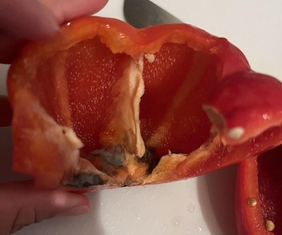 Not only was a large part of this pepper rotting you also packed it in with the raw meat! Do better target!