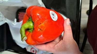 Bought 3 peppers because they looked perfectly beautiful, which is wild for Target produce because it is almost always gross or rotten.