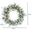 - Adorned with an assortment of snow-dusted greenery, berries, pinecones, and jingle bells for a rich and welcoming holiday display