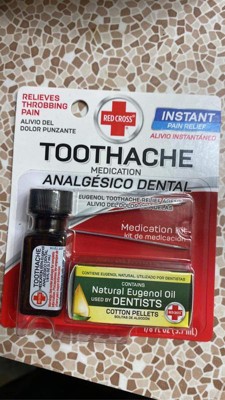 [This review was collected as part of a promotion.] I highly recomend Red Cross Toothache Medication to relieve severe, throbbing pain instantly. It comes in a nice kit with pain medication along with tweezers and cotton pellets for easy, controlled, and accurate application. It works very well and very fast because it has 85% eugenol, an ingredient used by dentists to relieve sharp tooth pain at the root. This is our go to when we need to get into the dentist, but have to wait. It works fast, and effectively.
