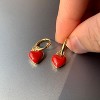Red Enamel Heart Huggie Earrings, Gold Plated