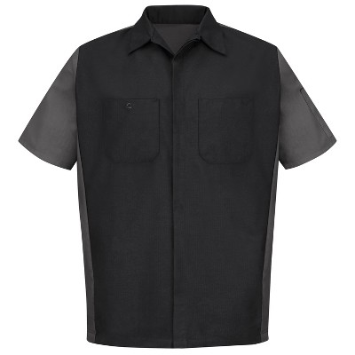 Red Kap Men's Long Sleeve Tri-Color Shop Shirt, Black/Charcoal - Xl Tall