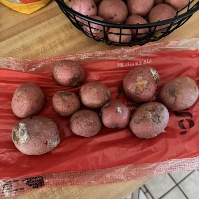 Received potatoes so moldy they were leaking through the bag. I’ve never even seen potatoes that have gotten that bad before. The smell took over my kitchen even.